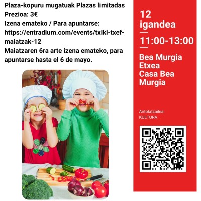 El Ayuntamiento ha organizado un nuevo taller de Txiki Txef para el 12 de mayo, domingo.