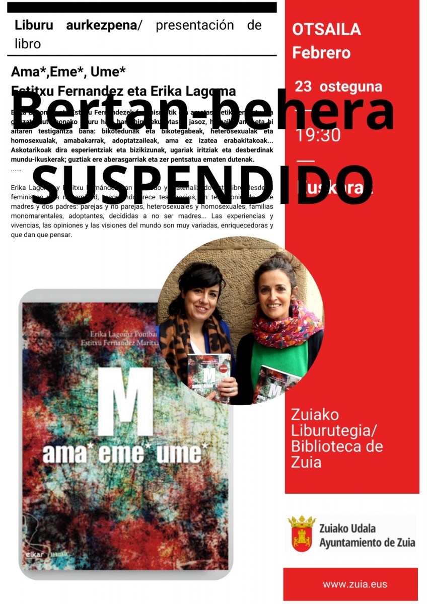 Se ha tenido que aplazar la presentación del libro 'Ama*, Eme*, Ume*' prevista para hoy, jueves.
