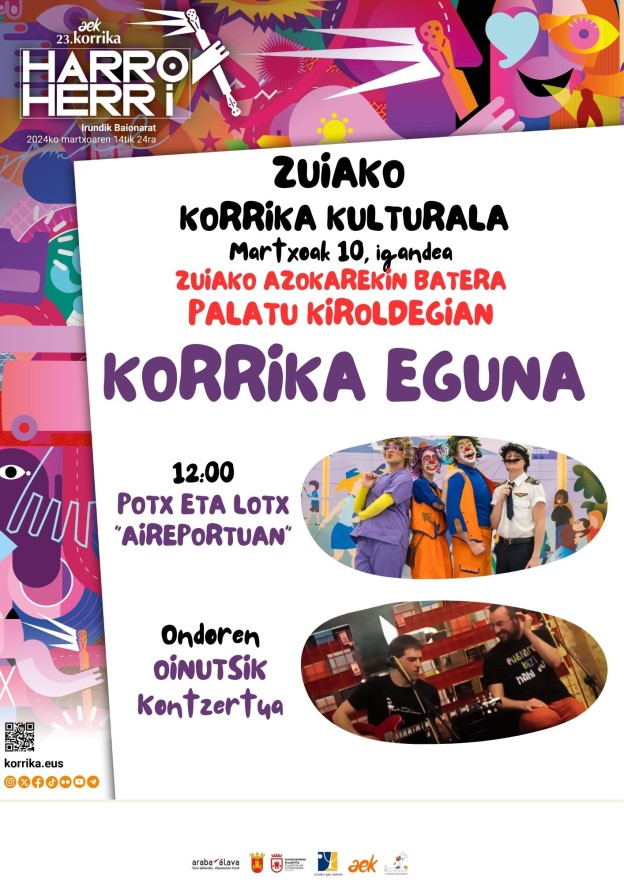 Mientras tanto, sigue en marcha la Korrika Kulturala. El 10 de marzo (domingo), podremos disfrutar de la KORRIKA JAIA, en el contexto del mercado mensual que se celebra en Zuia.