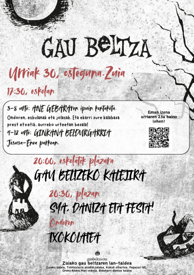 Por otro lado, para que podamos celebrar la Gau Beltza como es debido, necesitamos vuestra implicación (padres y madres): si estás dispuesto/a a colaborar, indícalo en el formulario. Eskerrik asko!