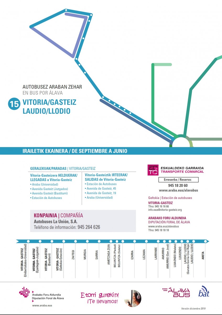 ¡Nuevos horarios en Alavabus desde el 1 de junio!Línea 15 Vitoria-Gasteiz / Llodio Horarios: