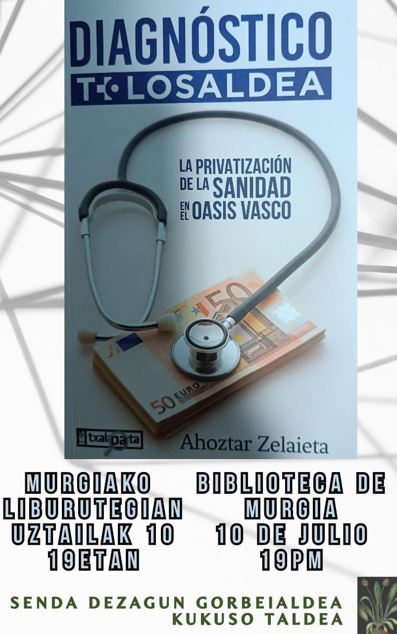 El 10 de julio, el periodista Ahoztar Zelaieta presentará el libro 'La privatización de la sanidad en el Oasis Vasco' en la biblioteca de Murgia, a las 19:00.