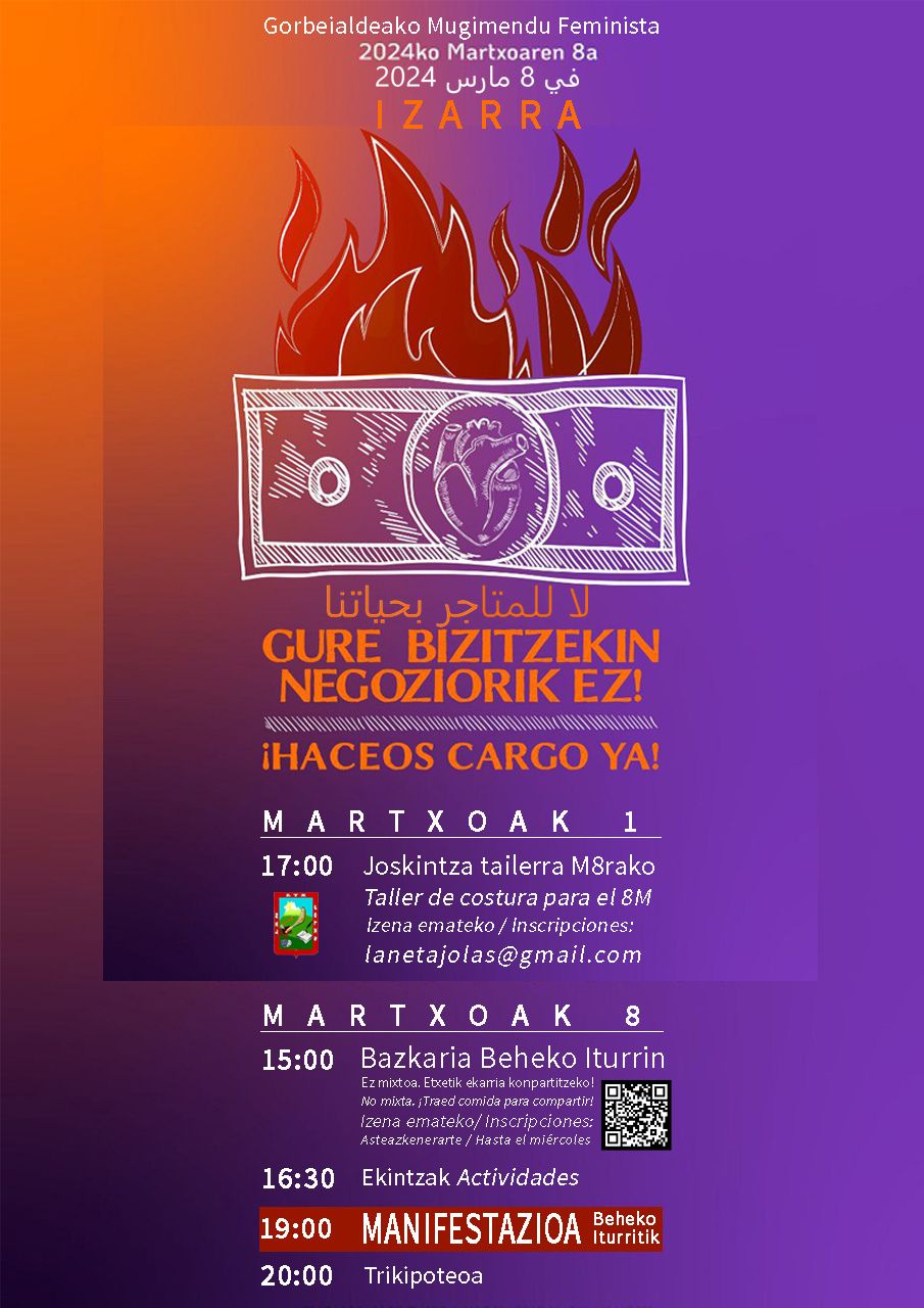 Posteriormente, para este viernes, 8 de marzo, se ha organizado una comida en Beheko Iturri a las 15:00. Se deberá llevar comida para compartir. Y hay que apuntarse en el QR.