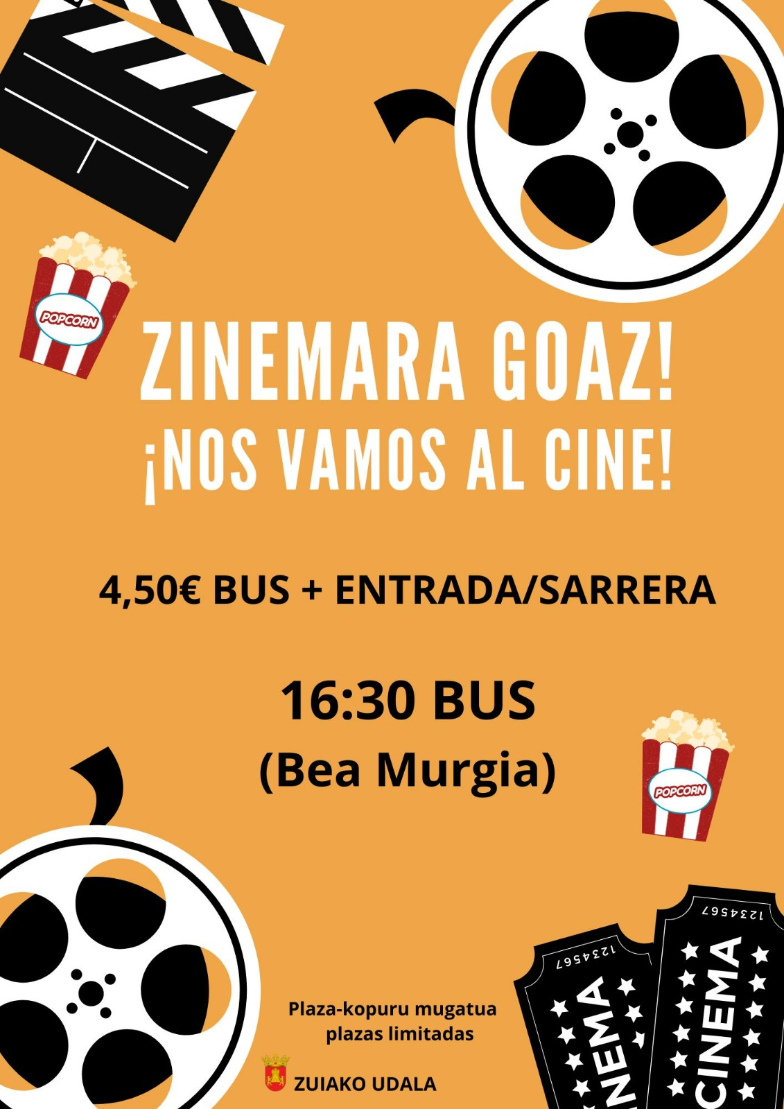 El Ayuntamiento ha organizado una salida para ver el cine en Gasteiz para el 27 de febrero, jueves.