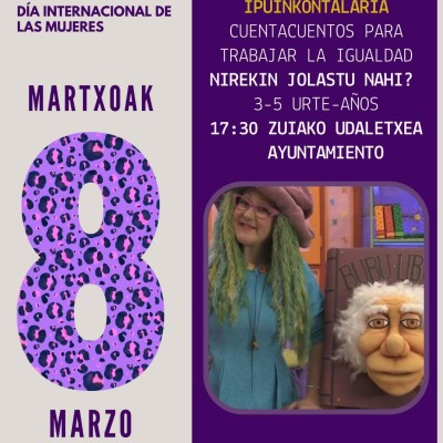 Martxoaren 22an, ostirala, berdintasuna lantzeko ipuin kontaketa saioa egingo da Udaletxean, 17:30ean.