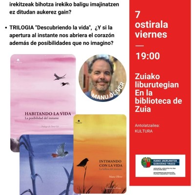 Manu Oliver idazleak 'Habitando la vida', 'Descansando en la vida' eta 'Intimando con la vida' liburuek osatzen duten trilogia aurkeztuko du.