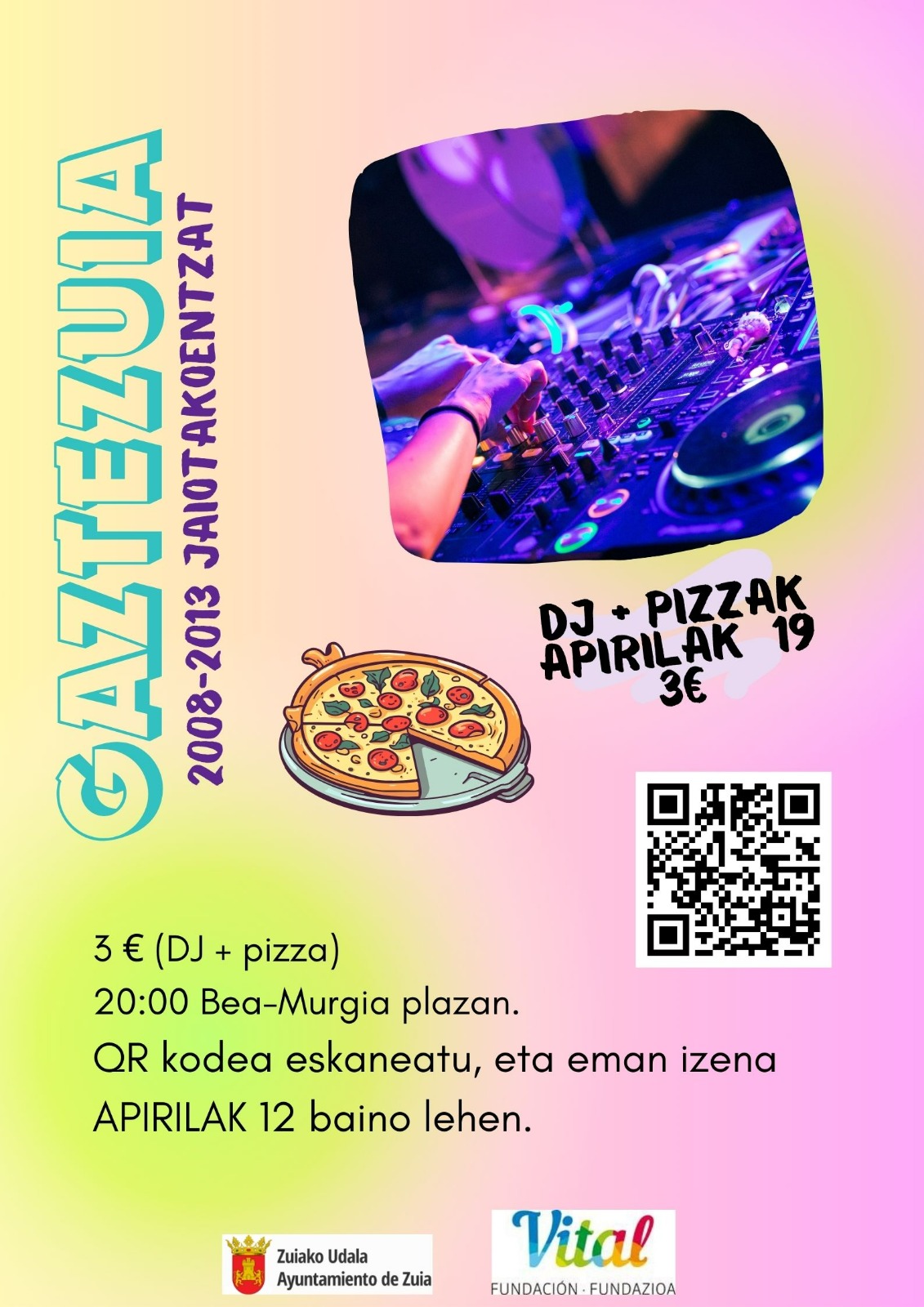20:00etan, Bea Murgia plazan, DJ eta pizzak izango dira. 3 euro ordaindu beharko dira.