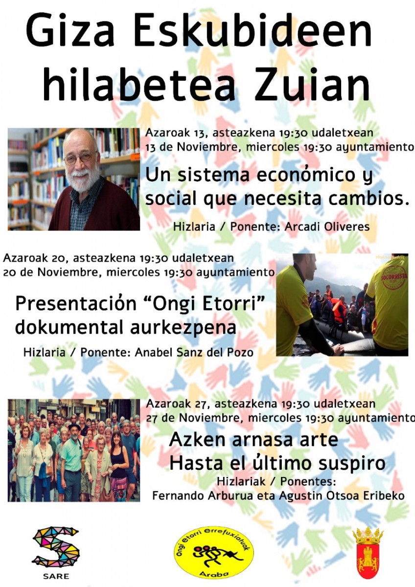 Murgia, 2019ko azaroaren 8a_ Sare eta Ongi Etorri Errefuxiatuak Araba elkarteen lankidetzan, GIZA ESKUBIDEEN HILABETEA antolatu du Zuiako Udalak. Aurtengoa, laugarren edizioa izango da eta, aurrekoetan bezala, helburua da "gobernuek eragiten dituzten Giza Eskubideen etengabeko urraketak salatzea; bai Euskal Herrian, preso politikoekin adibidez, bai eta kanpoan ere: Katalunian, Hegoamerikan, Mediterraneoan..." azaldu dute antolatzaileek.