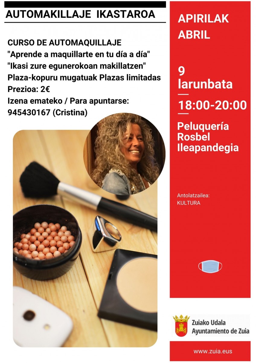 Ikasi zure egunerokoan makillatzen! Ikastaro honetan plaza kopuru mugatuak daude, beraz, eman izena telefono honetan: 945430167 (Cristina).