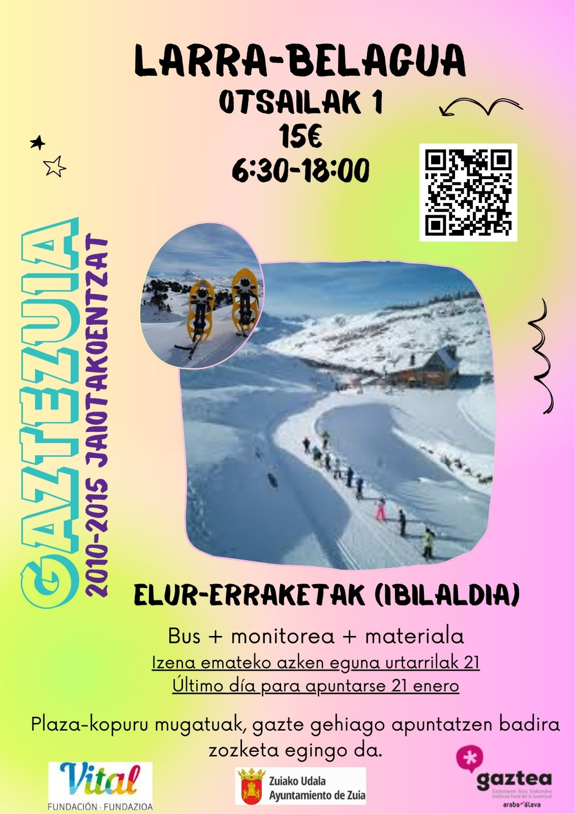 Gaztezuiak elur-erraketak egiteko irteera antolatu du otsailaren 1ean, Larra-Belaguan, 2010 eta 2015 urteen artean jaiotako gazteentzat.