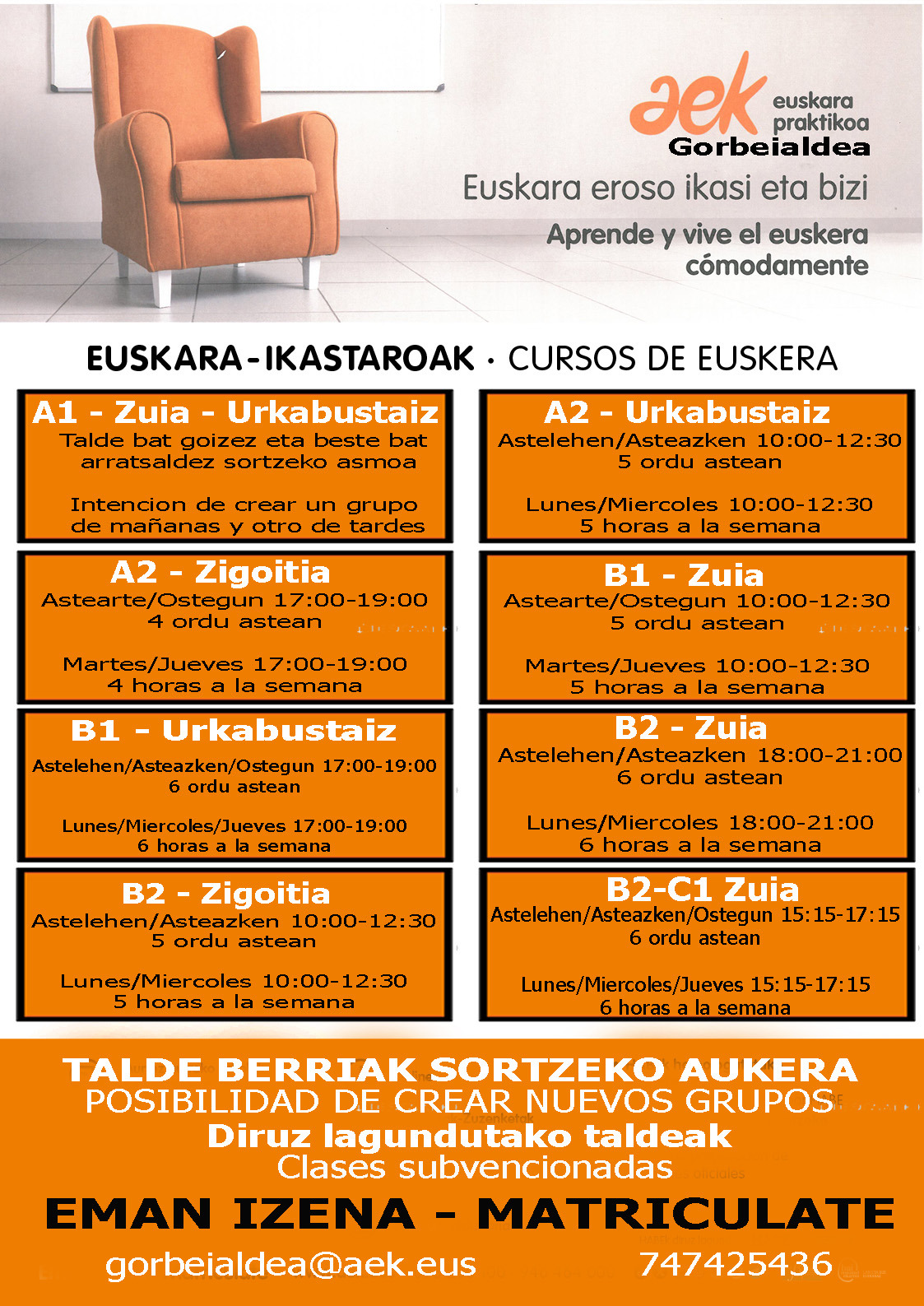 Zalantzarik izanez gero: gorbeialdea@aek.eus / 747425436