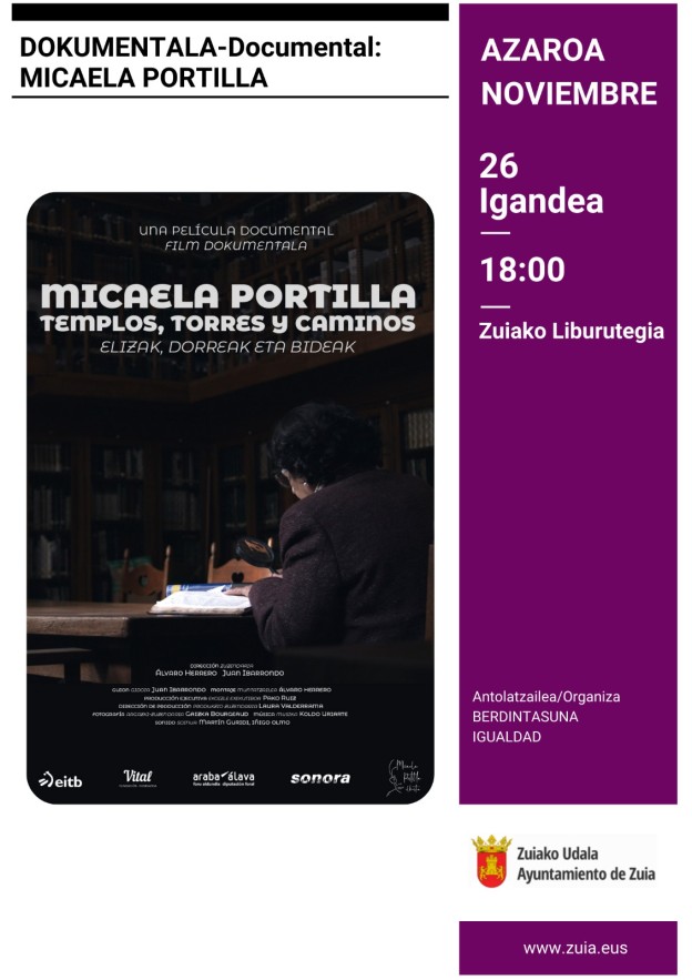 Azaroaren 26an, igandea, Arabako antropologa, historialari eta pedagoga aitzindari honi buruzko 'Templos, torres y caminos' dokumentala eskainiko da liburutegian, 18:00etan.